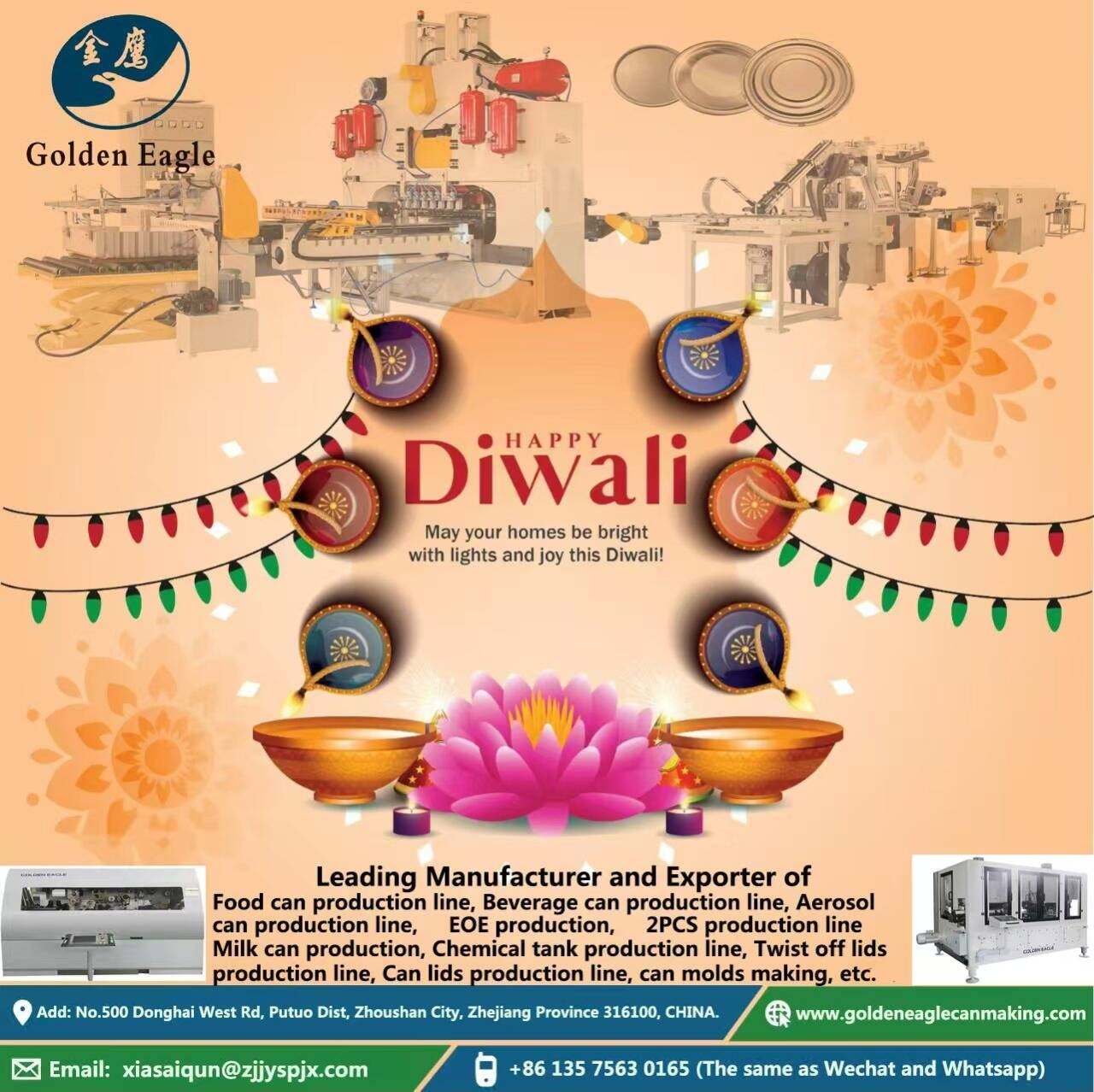 Glad Diwali till alla mina muslimska vänner. Må dina hem vara ljusa med ljus och glädje. Jag är Helen, tillverkaren av metallburkens produktionslinje runt dig.